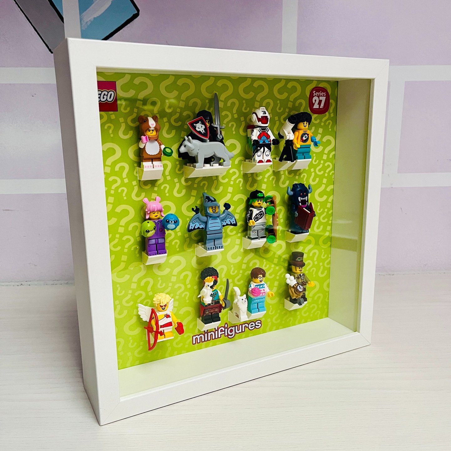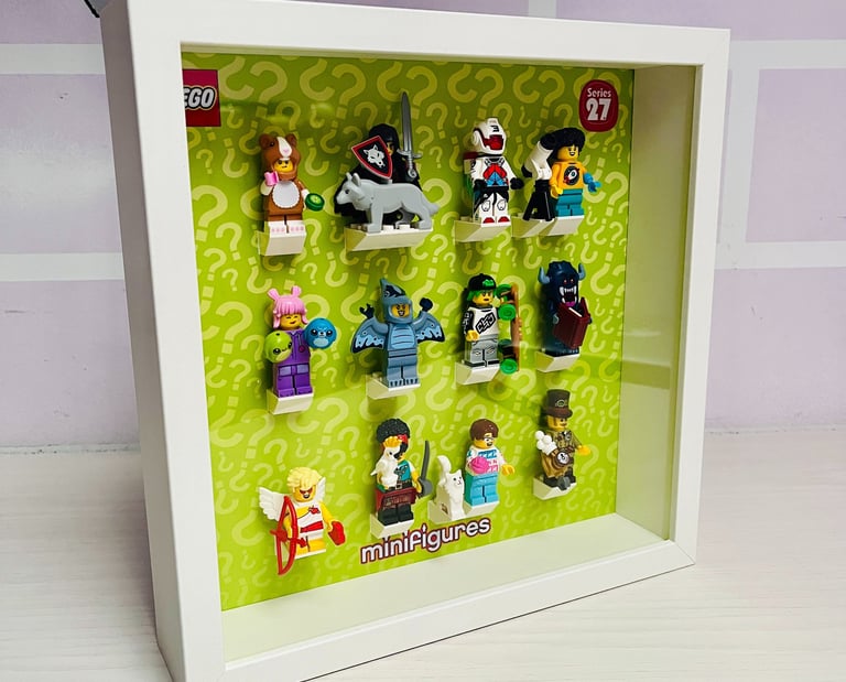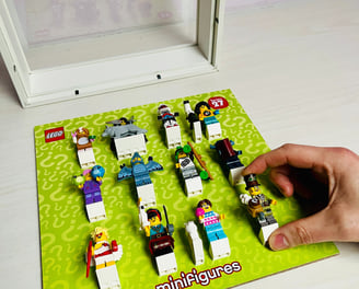 Appoggiarsi su una superficie piana e montare le minifigures nello stesso ordine del bugiardino Lego® se la cornice è una delle serie collezionabili, oppure seguendo l'ordine che si preferisce se la corncie è per una collezione generica.